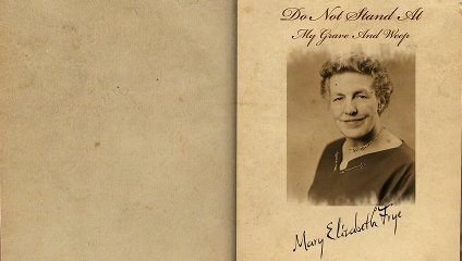 When her mother died, the heartbroken young woman told Frye that she never had the chance to “stand by my mother’s grave and shed a tear”. Frye found herself composing a piece of verse on a brown paper shopping bag. Later she said that the words “just came to her” and expressed what she felt about life and death.