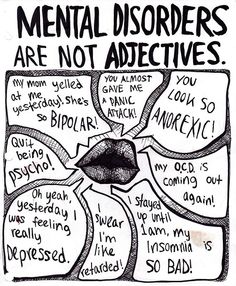 We really must be careful. We can use our language in such way that reveals our ignorance of the medical and psychological status of disorders. When we use words casually we start to ‘dilute’ them. They can describe a ‘reality’ of things that don’t really exist; we then end up speaking falsely and minimize the severity of a disorder.