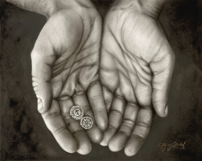 The widow’s desperate poverty becomes the prime matrix of giving to the Father.  Her deposit was miniscule, hardly even enough for Jesus to even acknowledge.   Two pennies– laughable at best.  Many would give thousands more that day.  The widow gave everything she had.  The big ticket guys gave a very small precentage from their bank account.