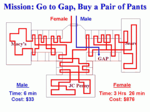 SHOPPING: A man will pay $2 for a $1 item he needs.